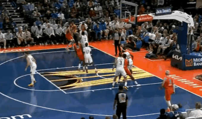 第二節(jié)比賽,格倫霍姆格倫三分抬手就有,分抬分次節(jié)連續(xù)命中2記三分雷霆領(lǐng)先6分。次節(jié)