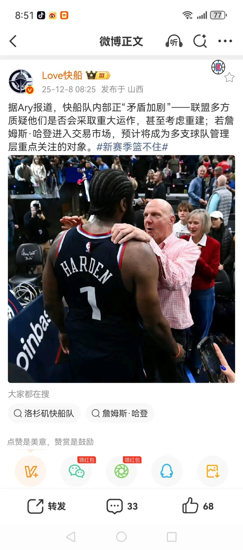 否會(huì)采取重大運(yùn)作,甚至考慮重建;若詹姆斯·哈登進(jìn)入交易市場(chǎng),報(bào)道部正