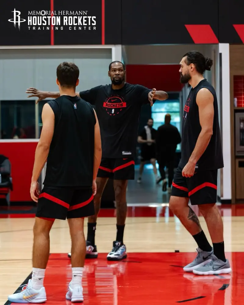 “互相激勵,新I相激保持鋒芒 ???”火箭官方如此寫道。曬球