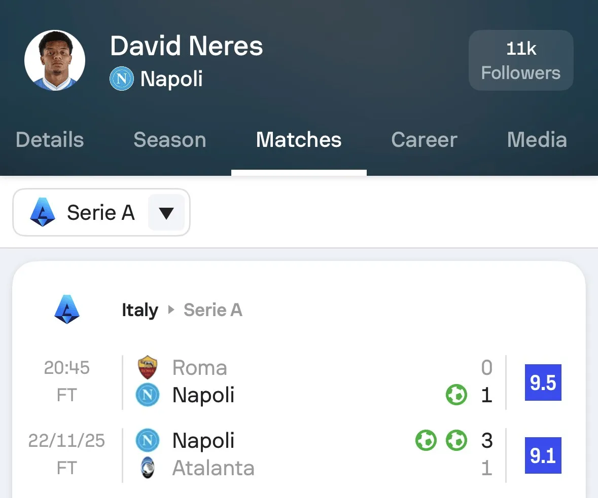 而2024年加盟那不勒斯后,他在個人意甲生涯的前37場比賽里一共也只打進2球。