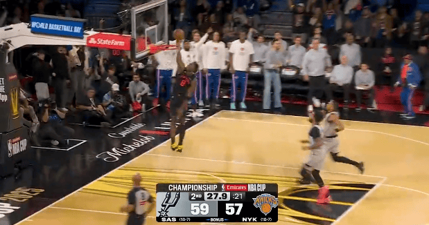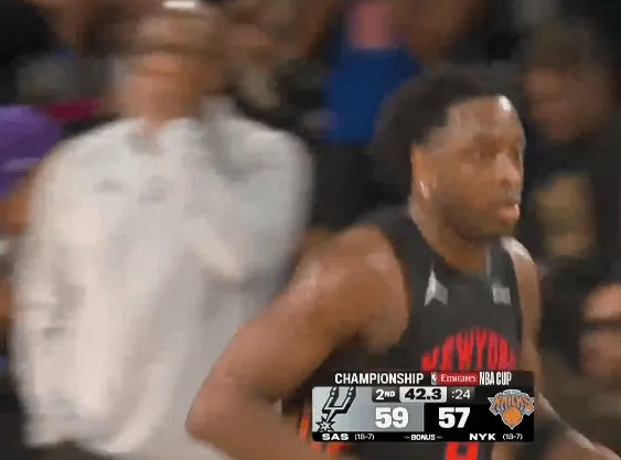 虎撲12月17日訊 NBA杯決賽,尼克斯對陣馬刺的續(xù)快下分比賽正在進(jìn)行中。