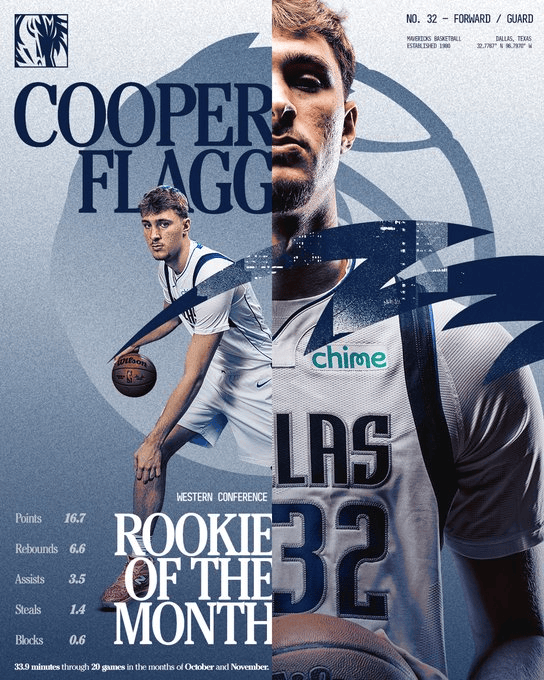 [流言板]獨行俠官方:旗幟繼續(xù)高揚,祝賀弗拉格當(dāng)選月最佳新秀!