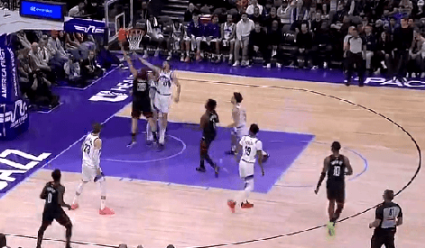 比賽的門助第二節(jié),申京攻守轉(zhuǎn)換接阿門助攻,跨步大跨步殺到籃下上籃打進?;@下