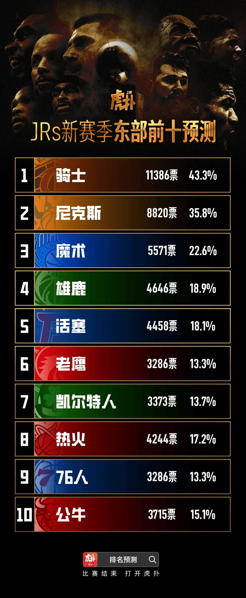 JRs在賽季前預(yù)測(cè)的東部排名如下: