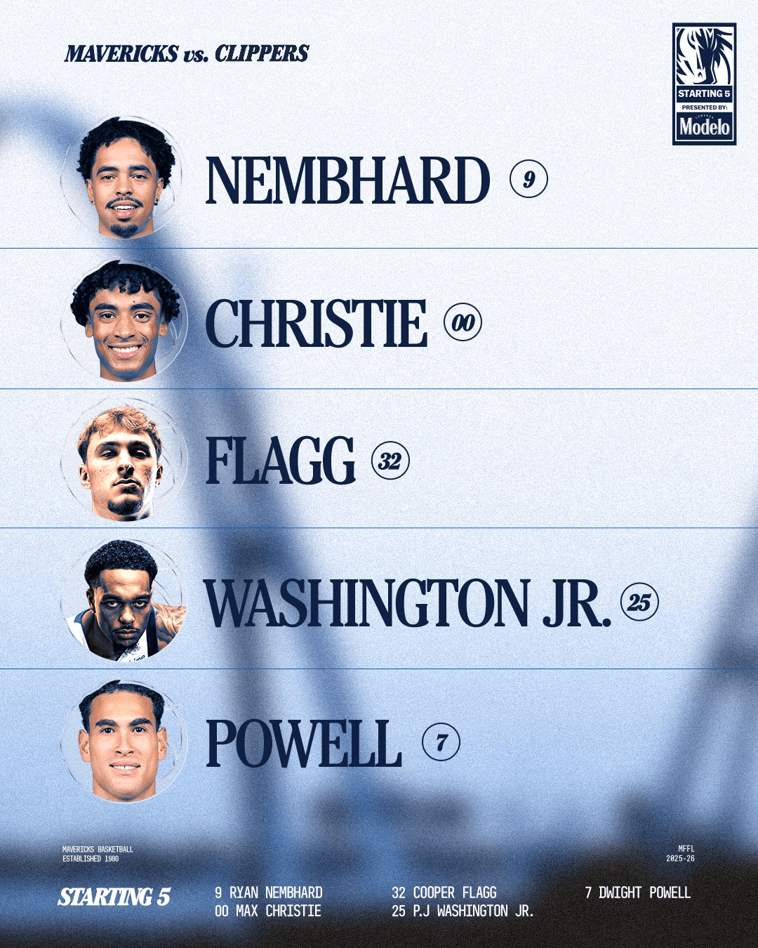 賽前,內(nèi)姆獨(dú)行俠官方公布球隊首發(fā):