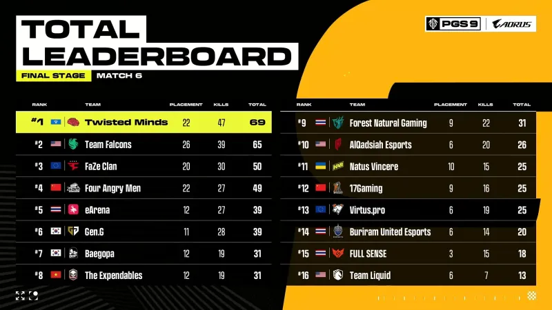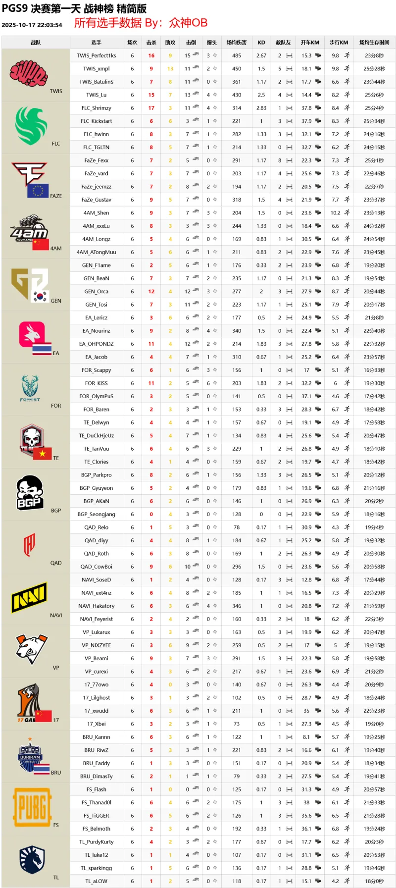 PGS9決賽第一天 積分榜&戰(zhàn)神榜
