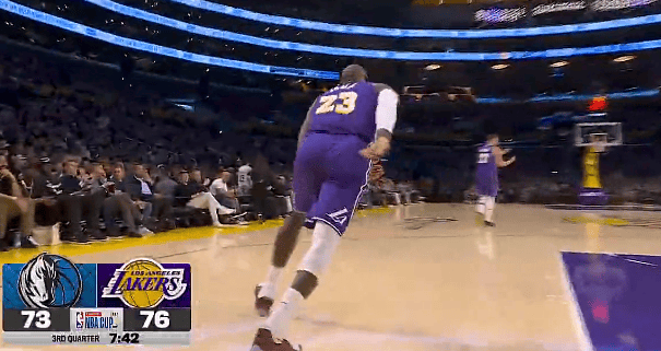 虎撲11月29日訊 NBA杯小組賽,湖人對(duì)陣獨(dú)行俠的中后詹姆比賽正在進(jìn)行中。