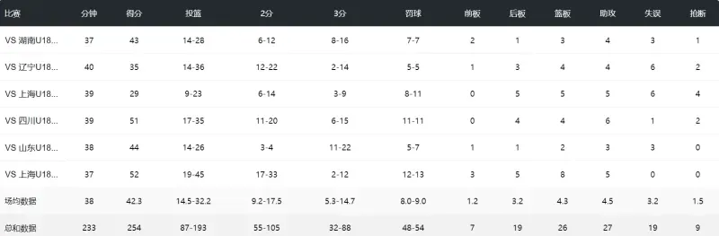 本屆全運會U18男籃項目,李悅洲場均貢獻42.3分4.3籃板4.5助攻。