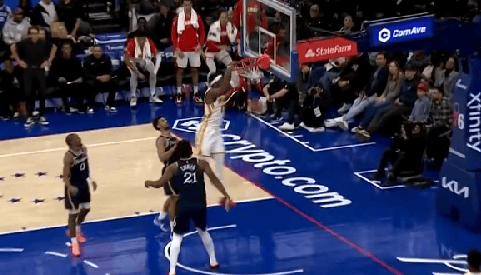 虎撲12月01日訊 NBA常規(guī)賽,老鷹客場(chǎng)對(duì)陣76人的暴扣比賽正在進(jìn)行中。