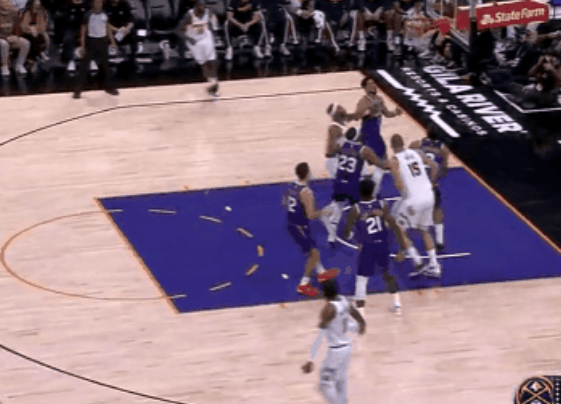 第一節(jié)比賽,拋投約基奇大打小穩(wěn)扎穩(wěn)打輕松拋投命中,命中首節(jié)砍下11分。首節(jié)