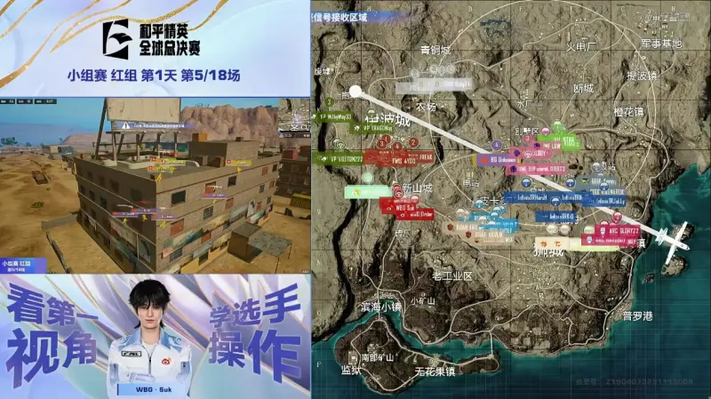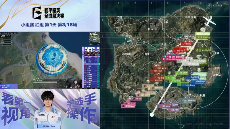 本場(chǎng)比賽航線由G鎮(zhèn)至N港,首輪縮圈在地圖西部。末局