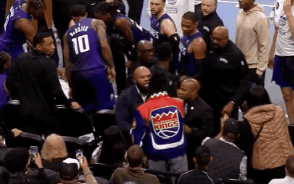 第四節(jié)比賽,席瘋暫停期間國(guó)王球迷朝國(guó)王替補(bǔ)席瘋狂輸出。狂輸