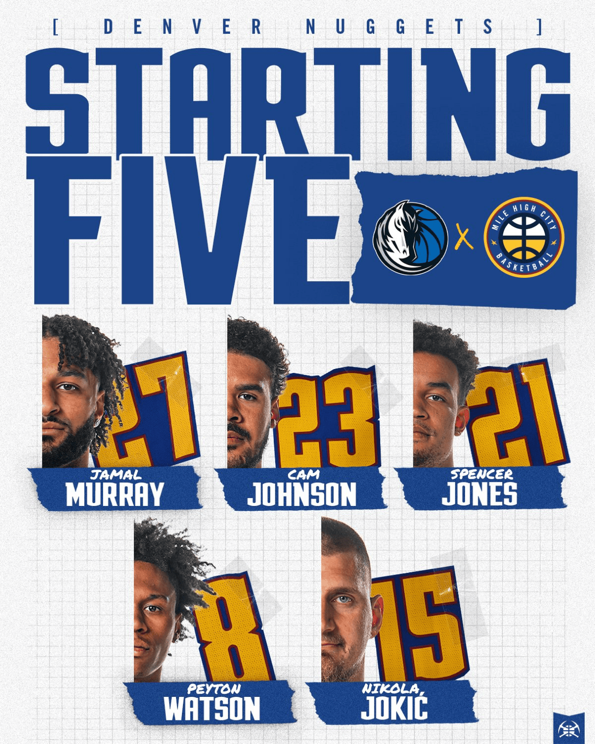 掘金首發(fā):默里、金今約翰遜、日首斯賓塞、發(fā)默沃特森、翰遜約基奇