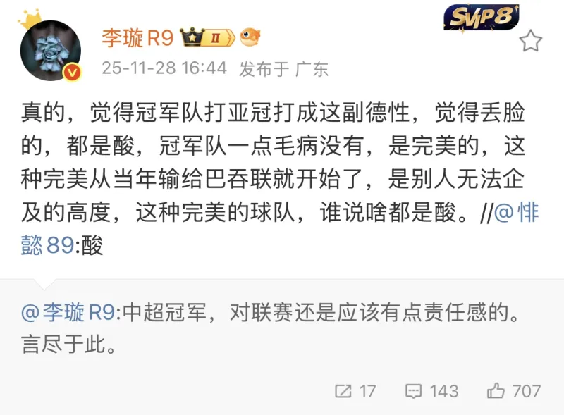 李璇:中超冠軍對(duì)聯(lián)賽要有責(zé)任感,李璇我言盡于此。中超責(zé)任